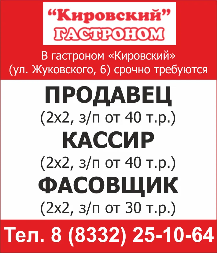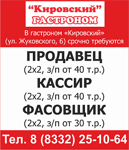 Как всегда только свежие и актуальные вакансии Кирова на страницах нашего издания