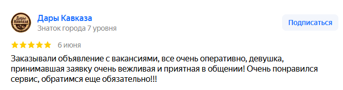часто размещаем вакансии в газете и уже стали постоянными клиентами.