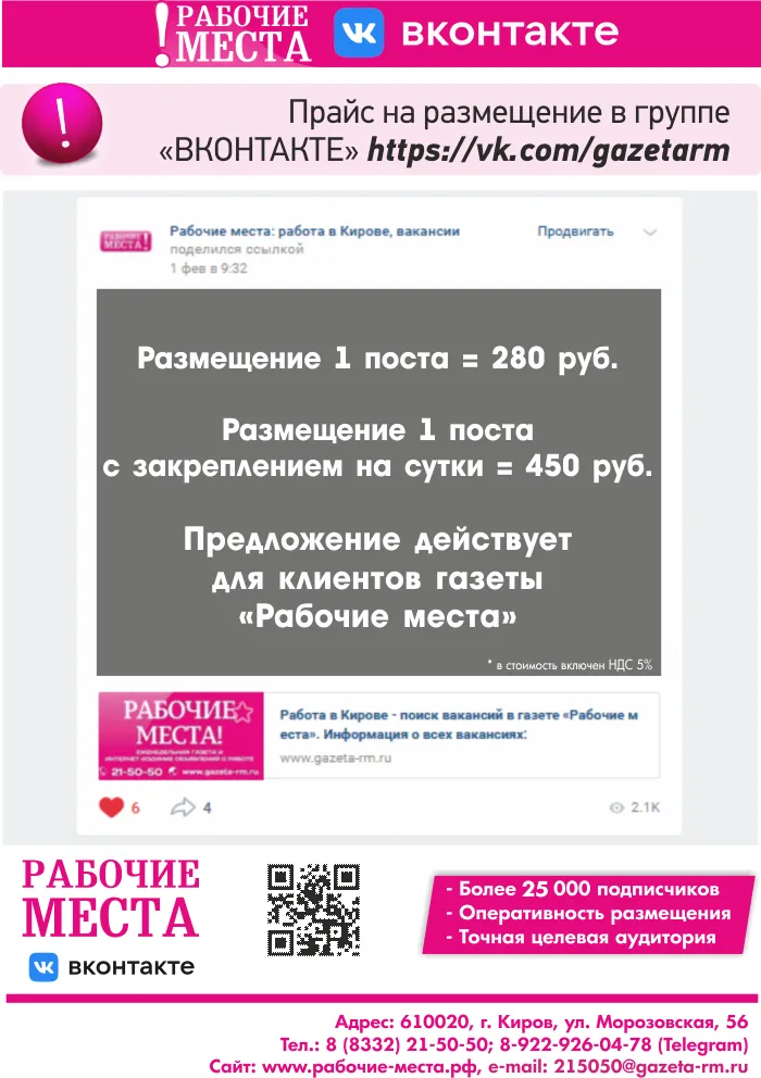 С газетой «Рабочие места» сотрудничают ведущие организации не только Кировской области, но и других регионов России.